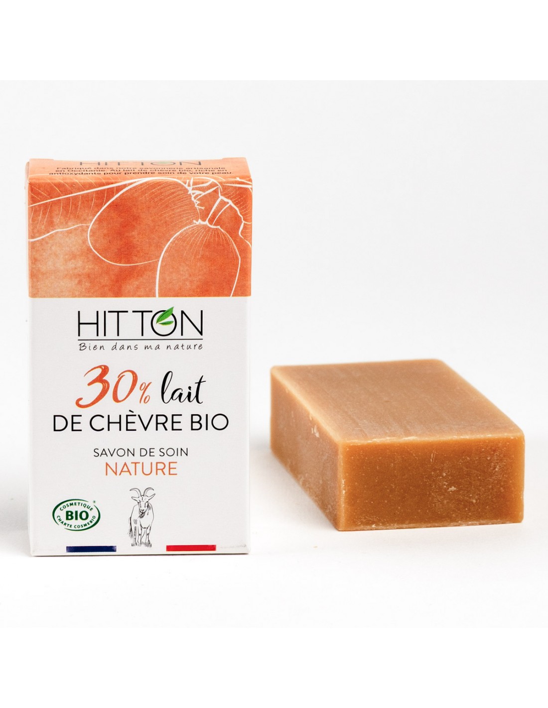 Savon saponifié à froid formulé avec 30 % de lait de chèvre bio issu d'une ferme voisine, beurre de karité, huile de coco et huile de ricin. Sans parfum ni huile essentielle, il est particulièrement recommandé pour les peaux fragiles, les mamans et les bébés. Sa mousse fine et abondante nettoie en douceur.